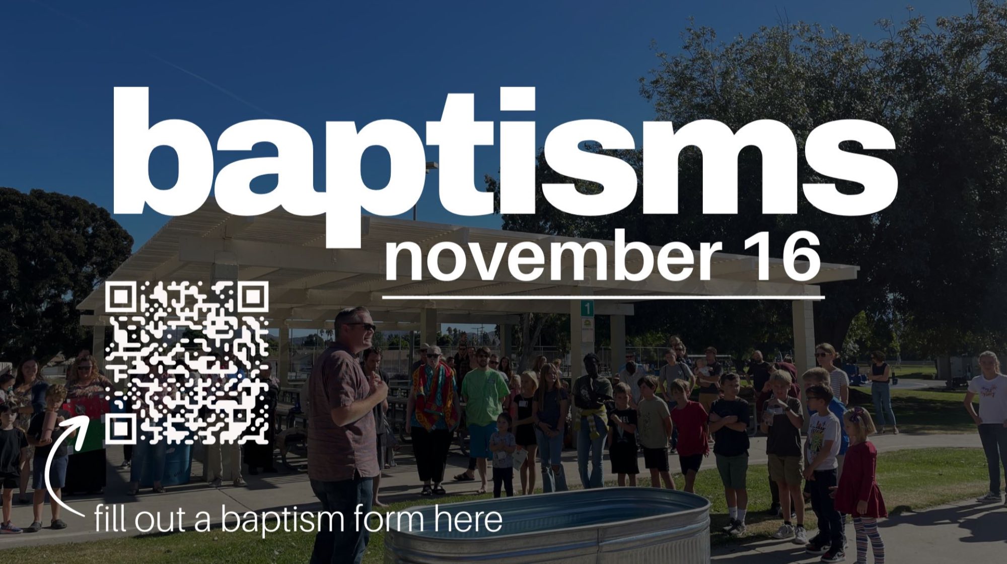 Arrive at 10:00am for coffee & donuts! We will gather to worship Jesus through singing, teaching and baptisms.